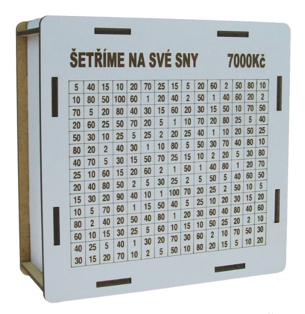 • Dřevěná odškrtávací pokladnička Je čas začít šetřit
