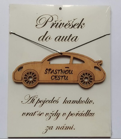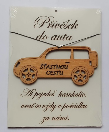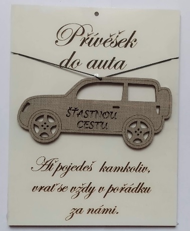 • Dřevěný gravírovaný přívěšek do auta Šťastnou cestu